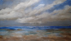 2018een jongentje bij de zee gschilderd in abstracte kleuren