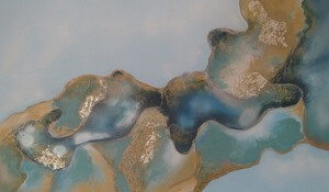 2025Blauw schilderij, beige schilderij, abstract schilderij