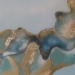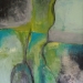 Een mooi abstract schilderij in de kleuren blauw, groen, goud en bladgoud